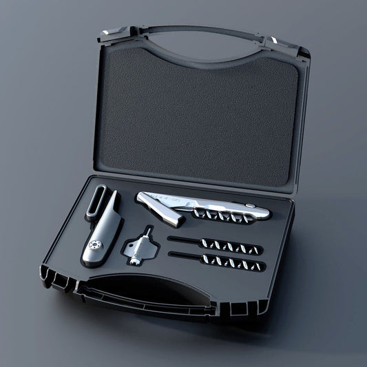 The new, 2026 P-Type Pro model is the foundation of the Code38 range. Incredibly solid and precisely engineered. The latest Somm Kit includes two spare helix, multi-tool, and Tactical Service Holster.